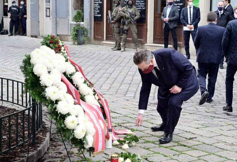 Michael Ludwig az áldozatokért elhelyezett koszorúnál © C.Jobst/PID