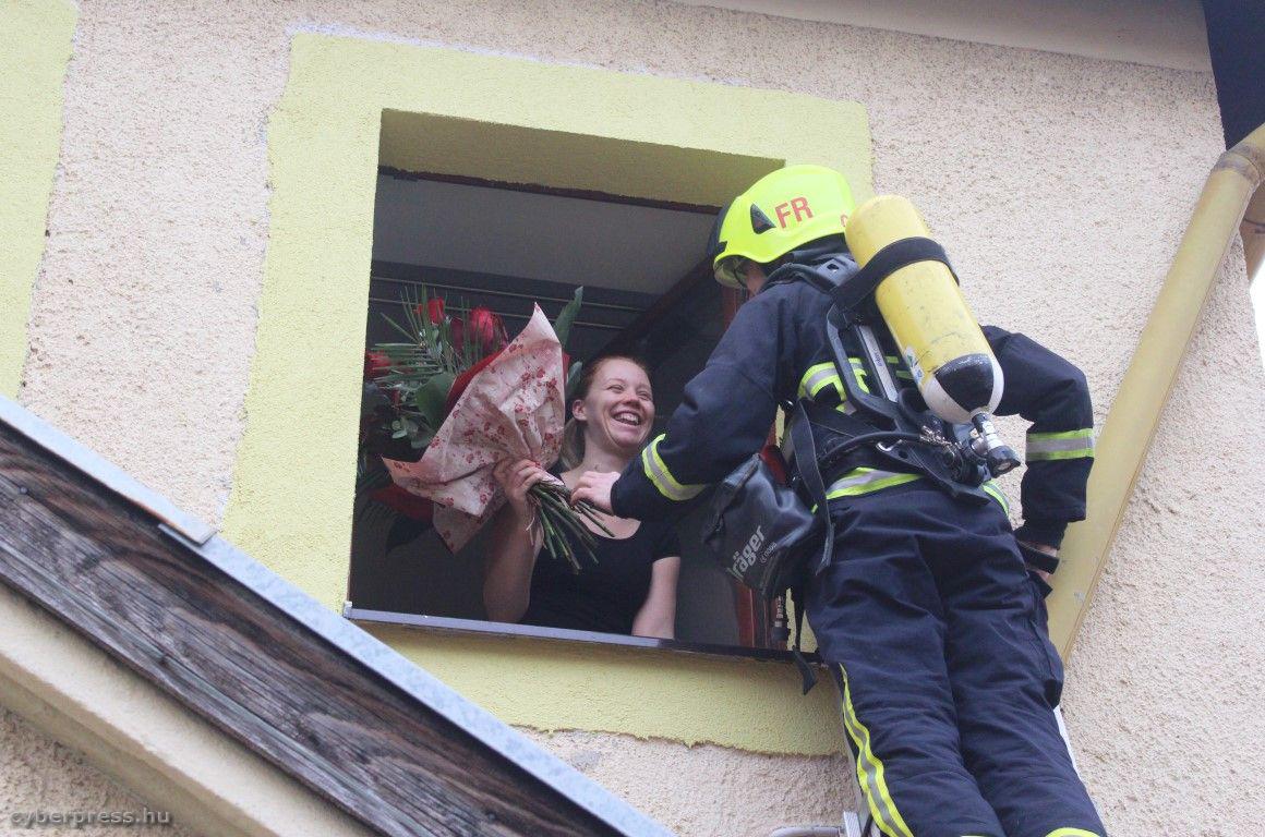 Helyszíni tudósításban számoltunk be képriporttal kiegészítve arról a nem mindennapi lánykérésről, amit Göndöcs Zsolt önkéntes tűzoltó hajtott végre bajtársai segítségével a soproni Halász utcában. Természetesen kedvese Mészégető Eszter igen mondott a létrán álló lánglovagnak. A cikk itt olvasható!