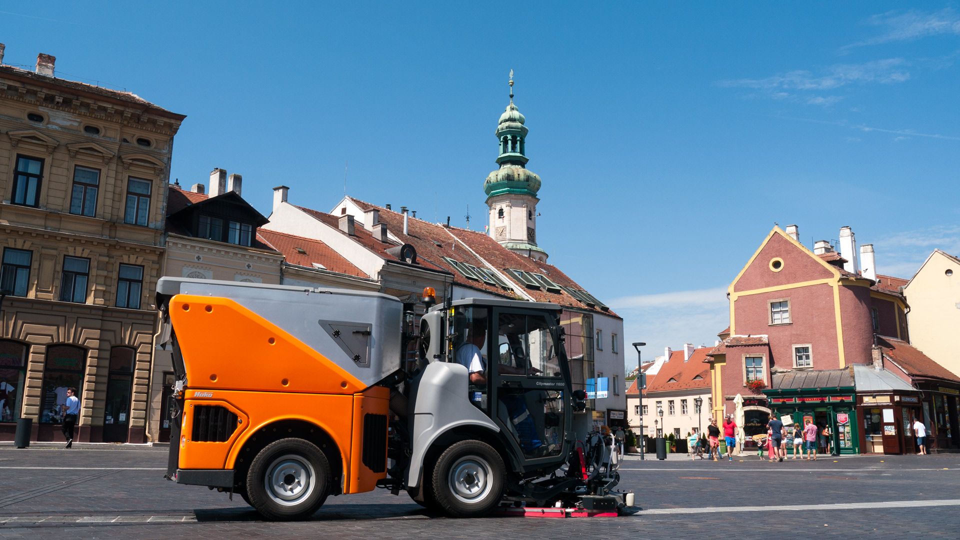 A Sopron Holding Zrt. munkatársa tisztítja a Várkerület közösségi terét 2016. július 11-én / cyberpress.hu archívum