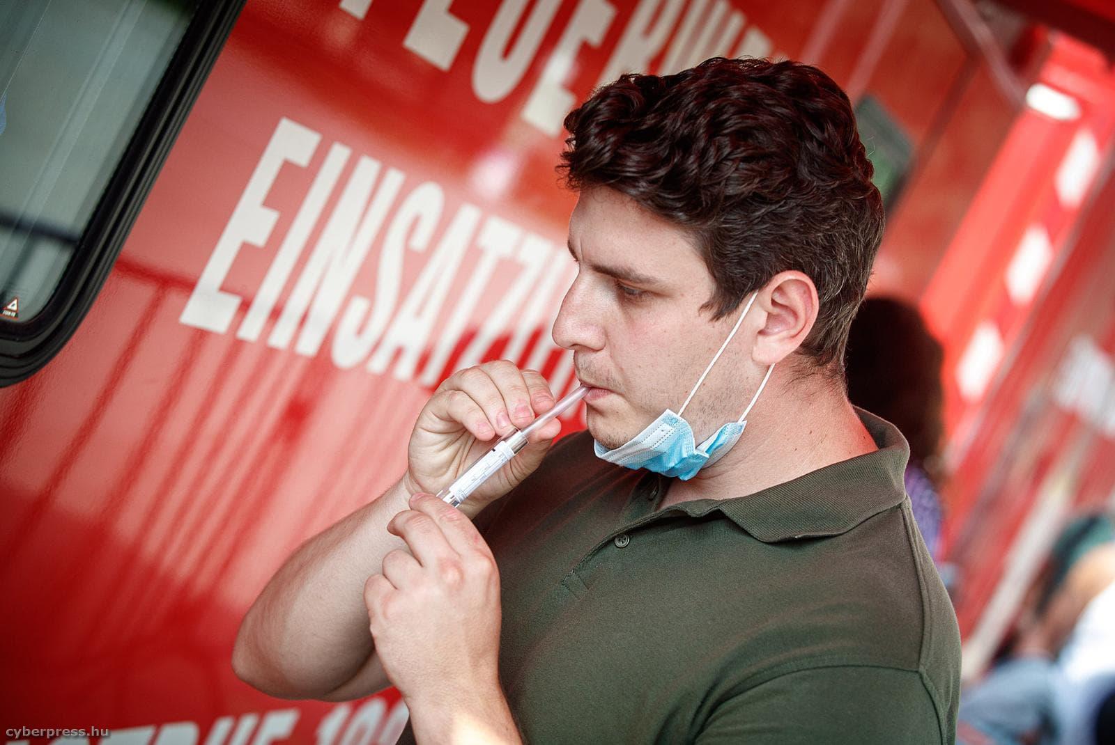 Gargalizálásos mintavételen alapuló koronavírus-teszt © PID/Schaub-Walzer