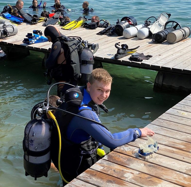 – A gokart a hobbim, már versenyszerűen űzöm. Nem veszélyes, dehogy! Amikor úgy érzem, ez már majdnem az, akkor lassítok… – mondja magától értetődően. Ezen kívül hat éves kora óta űz egy japán küzdősportot, amit ugyan a vírushelyzet miatt most hanyagolnia kell, de azért a megfelelő mozgások gyakorlását otthon sem felejti el. Nyaranta pedig búvárkodik.