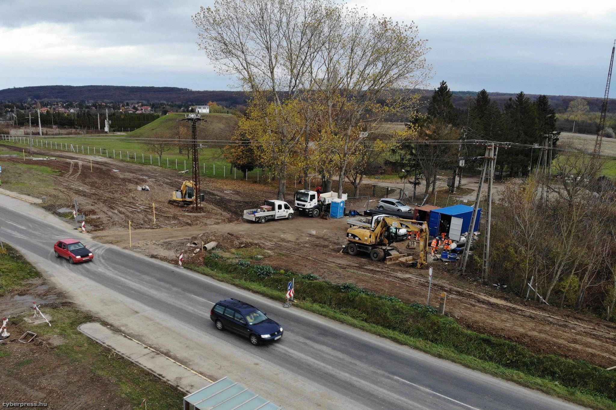 Az épülő M85-ös Pozsonyi úti lehajtójánál található vízműtelep / fotó: cyberpress.hu Ⓒ