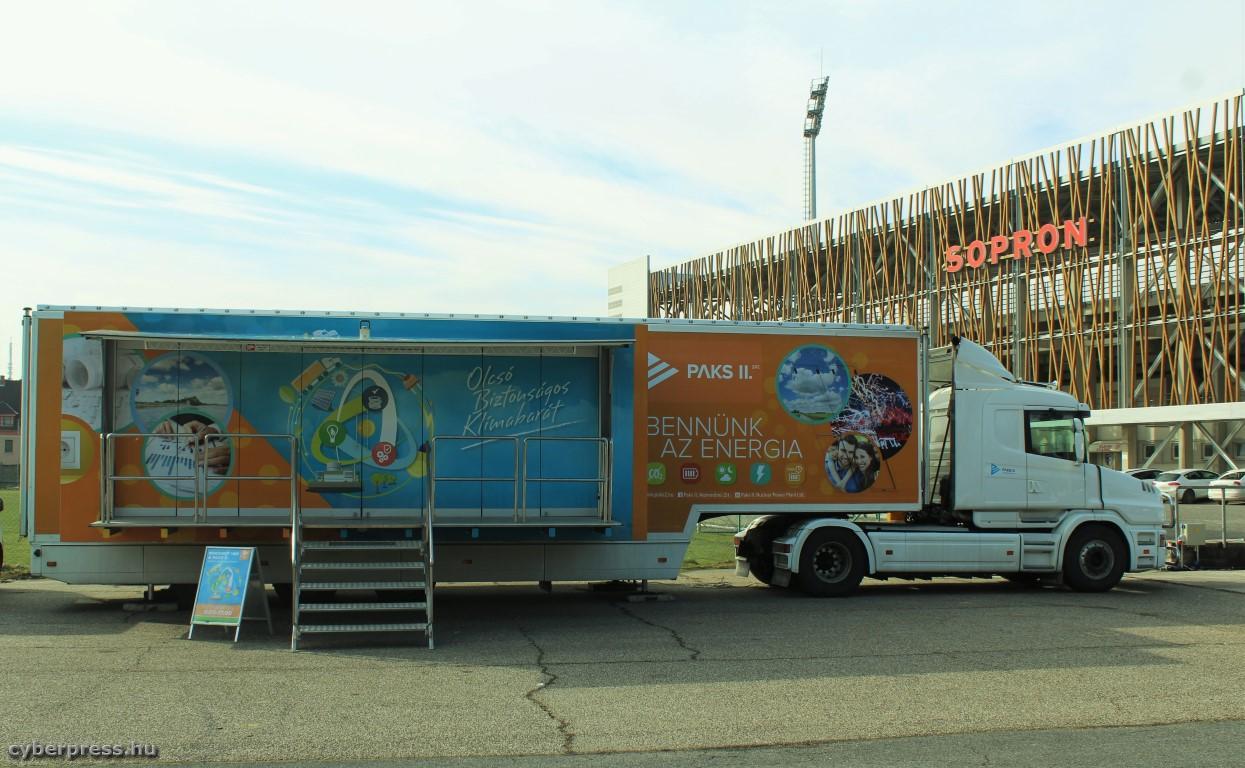 A PAKS II. interaktív tájékoztató kamion többször is járt Sopronban. Képünk 2018. februárjában készült a Városi Stadion területén. / fotó: Leczovics Zsolt – cyberpress.hu archívum