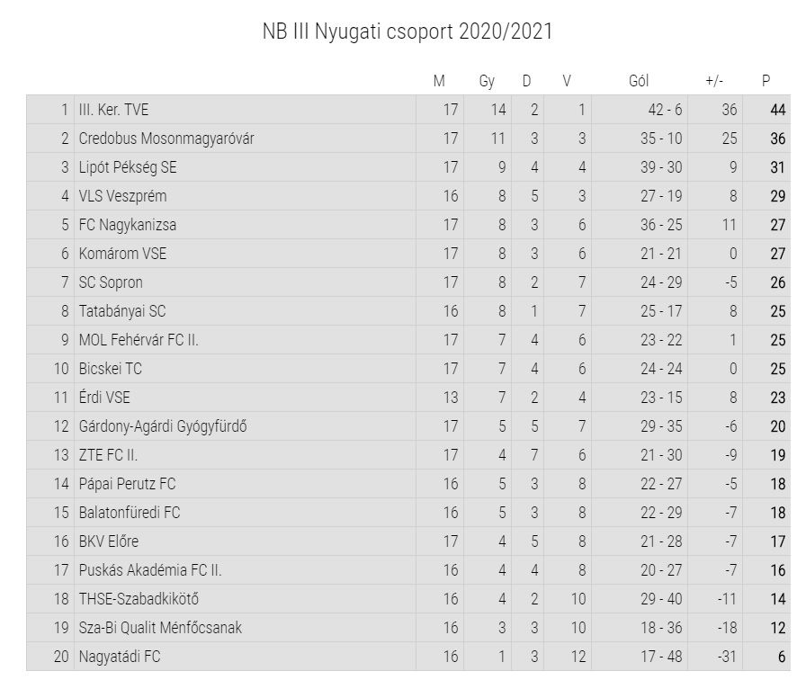 Tabella forrása: NB3.hu