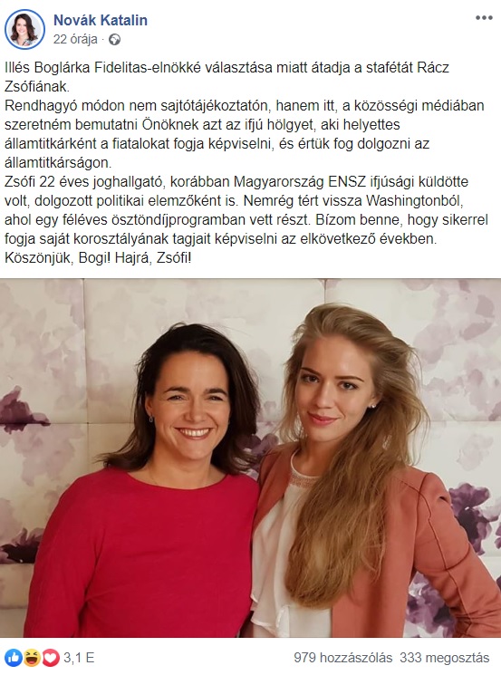 Egyre több aktuális közéleti hírben találhatunk valami soproni szálat is ( igaz olykor csak közvetetten, mint ez esetben is ) azonban igazán örömteli azzal szembesülni hogy az ország peremvidékén fekvő kisváros (!) neve is beleszövődhet egy-egy ilyen jellegű hírbe. A legújabb aktualitást most az adja, hogy szerdán jelentette be Facebook-oldalán Novák Katalin, Család- és ifjúságügyért felelős államtitkár, hogy Rácz Zsófia lesz az EMMI ifjúságpolitikáért és esélyteremtésért felelős helyettes államtitkára.