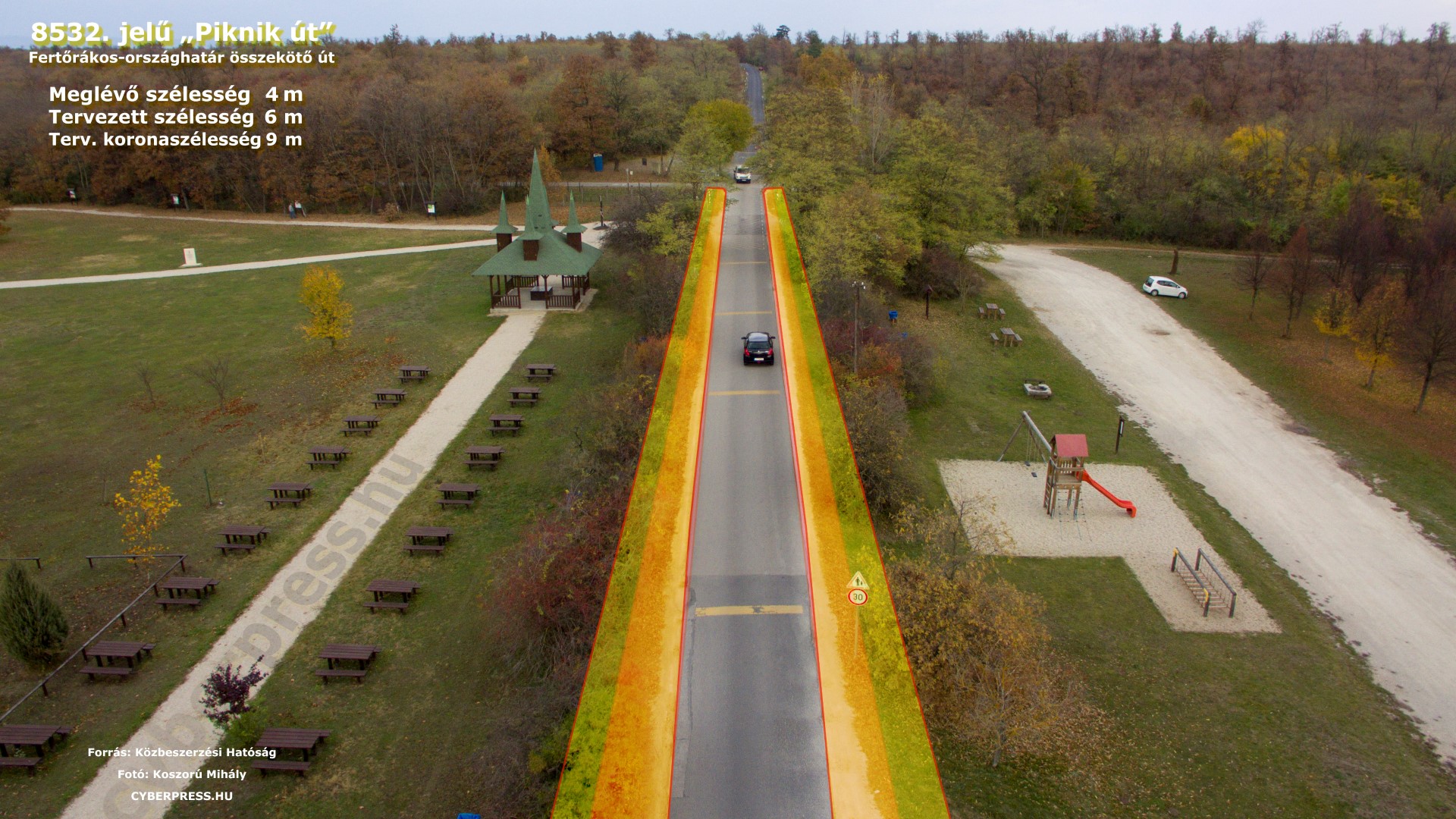 A fejlesztés az Innovációs és Technológiai Minisztérium megbízásából a NIF Nemzeti Infrastruktúra Fejlesztő Zrt. beruházásában az Széles Út Kft. kivitelezésében európai uniós forrásból az Interreg V-A Ausztria-Magyarország Együttműködési Program 2014-2020 keretében valósul meg. A kivitelezés nettó értéke: 735 433 500 Ft.