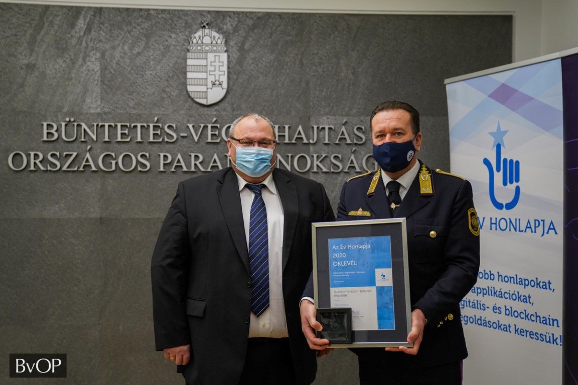 2018 után ismét díjat nyert a büntetés-végrehajtási szervezet Magyarország legrangosabb marketingkommunikációs szakmai elismerésén „Az Év Honlapja” pályázaton. A díjat Dr. Tóth Tamás bv. vezérőrnagy, a büntetés-végrehajtás országos parancsnoka vehette át Varga Istvántól, a Marketing Szövetség elnökségi tagjától, a díj alapítójától.
